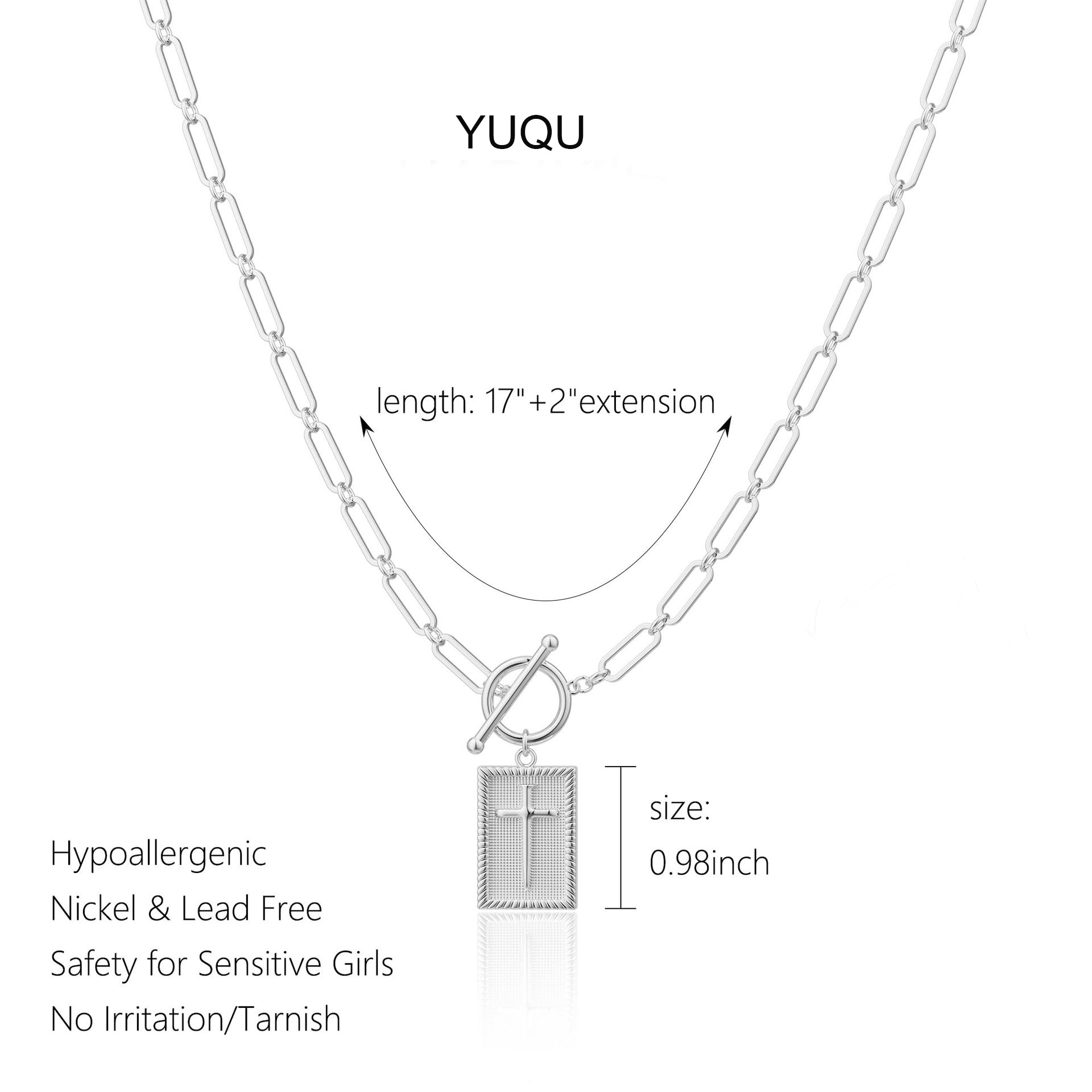 Clip Necklace Stainless Steel Cross Square Pendant Necklace